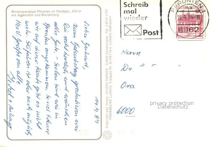 Pfronten Gesamtansicht im Schnee m. Aggenstein u. Breitenberg Pfronten postalisch gelaufen 1984 Erhaltung siehe scans [LiesaD40] LiesID40