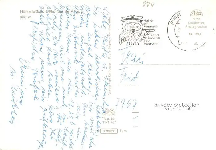 Pfronten Hoehenluftkurort Allgaeuer Alpen Fliegeraufnahme Pfronten postalisch gelaufen nach 1965 Erhaltung siehe scans [FriedD77] Frierer