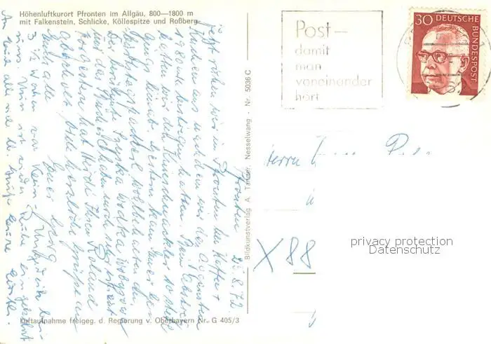 Pfronten Hoehenluftkurort mit Allgaeuer Alpen Pfronten postalisch gelaufen 1972 Fliegeraufnahme Erhaltung siehe scans [FriedD77] Fliegeraufnahme Frierer
