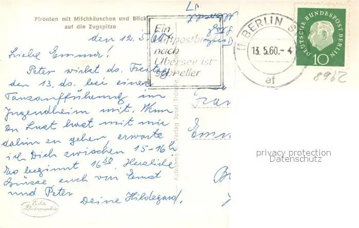Pfronten Milchhaeusle Zugspitze Pfronten postalisch gelaufen 1960 Erhaltung siehe scans [KathaD81] Kathoren