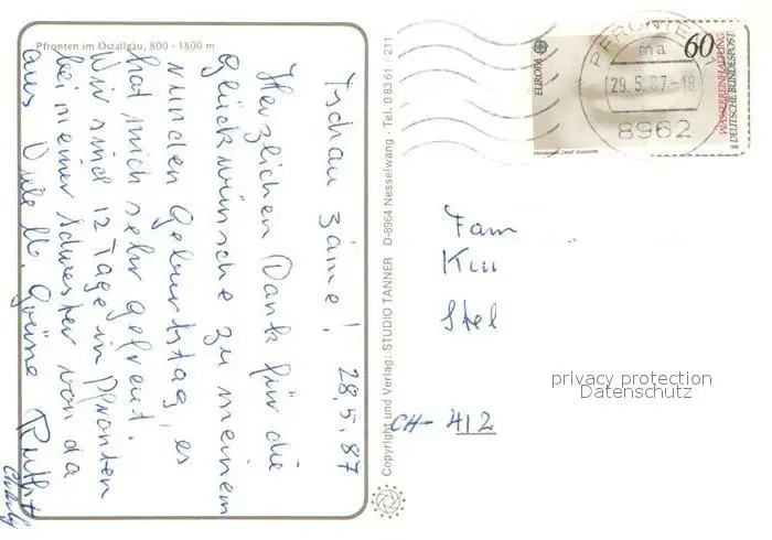 Pfronten Panorama Bergketten Pfronten postalisch gelaufen 1987 Erhaltung siehe scans [KathaD81] Kathoren