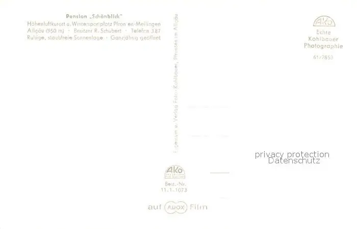 Pfronten Pension Schoenblick Aussicht Pfronten postalisch nicht gelaufen 1921-1965 Erhaltung siehe scans [LiesaD40] LiesID40