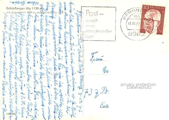 Pfronten Schlossanger Alp Aggenstein Breitenberg Pfronten postalisch gelaufen 1972 Erhaltung siehe scans [NatalD47] NataID47