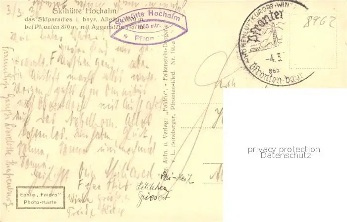 Pfronten Skihuette Hochalm mit Aggenstein Pfronten postalisch gelaufen 1936 Erhaltung siehe scans [WerneD78] WernPID7