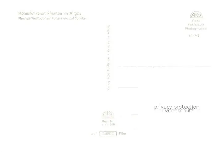 Pfronten Weissbach Falkenstein Schlicke Pfronten postalisch nicht gelaufen nach 1965 Erhaltung siehe scans [KathaD81] Kathoren