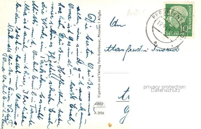 Pfronten mit Rossberg und Breitenbergbahntrasse Pfronten postalisch gelaufen 1955 Erhaltung siehe scans [WerneD78] WernPID7