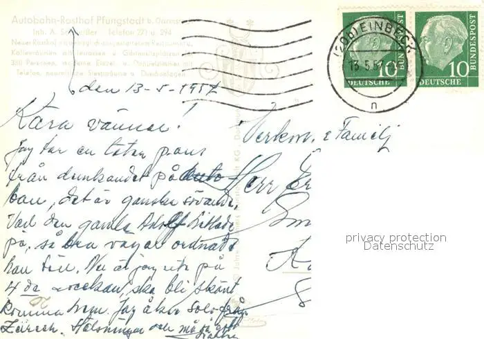 Pfungstadt Kategorie Alte Ansichtskarten Postkarten bx75049 Pfungstadt Fliegeraufnahme Autobahn Rasthof Pfungstadt postalisch gelaufen 1957 Erhaltung siehe scans [KathaD81]