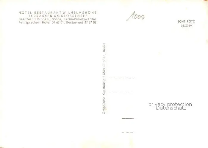 Pichelswerder_Berlin Restaurant Wilhelmshoehe Stoessensee Pichelswerder Berlin postalisch nicht gelaufen 1921-1965 Erhaltung siehe scans [KathaD81] Kathoren