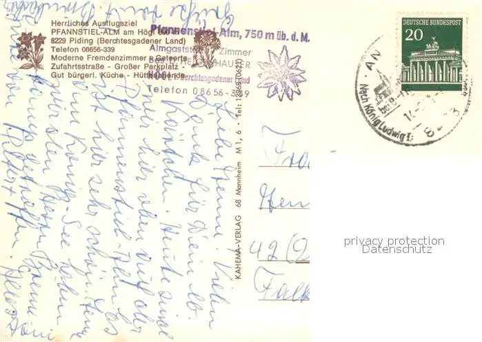 Piding Ausflugsziel Pfannstiel-Alm am Hoegl Gaststube Piding postalisch gelaufen nach 1965 Erhaltung siehe scans [FriedD77] Frierer