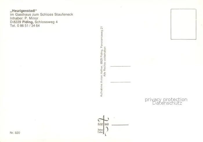 Piding Heurigenstadl Gasthaus zum Schloss Staufeneck Piding postalisch nicht gelaufen nach 1965 Erhaltung siehe scans [KathaD81] Kathoren
