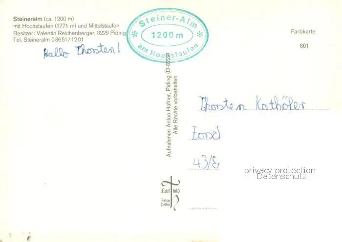 Piding Steineralm mit Hochstaufen und Mittelstaufen Piding postalisch nicht gelaufen nach 1965 Erhaltung siehe scans [FriedD77] Frierer