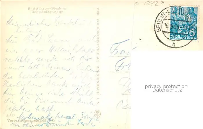 Pieskow_Bad_Saarow Bootsanlegestelle Pieskow_Bad_Saarow postalisch gelaufen 1958 Erhaltung siehe scans [KathaD81] Kathoren