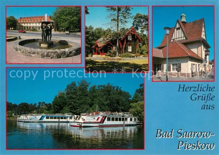 AK / Ansichtskarte Pieskow_Bad_Saarow Zentrum Gedenkst?tte Bahnhof Anlegestelle Schwanenwiese Pieskow_Bad_Saarow