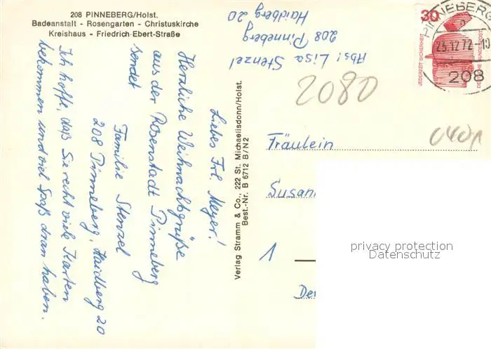 Pinneberg Badeanstalt Rosengarten Christuskirche Kreishaus Friedrich Ebert Strasse Pinneberg postalisch gelaufen 1972 Erhaltung siehe scans [FriedD77] Frierer