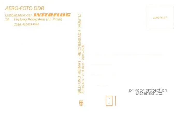 Pirna Festung Koenigstein Fliegeraufnahme Pirna postalisch nicht gelaufen nach 1965 Erhaltung siehe scans [WerneD78] WernPID7