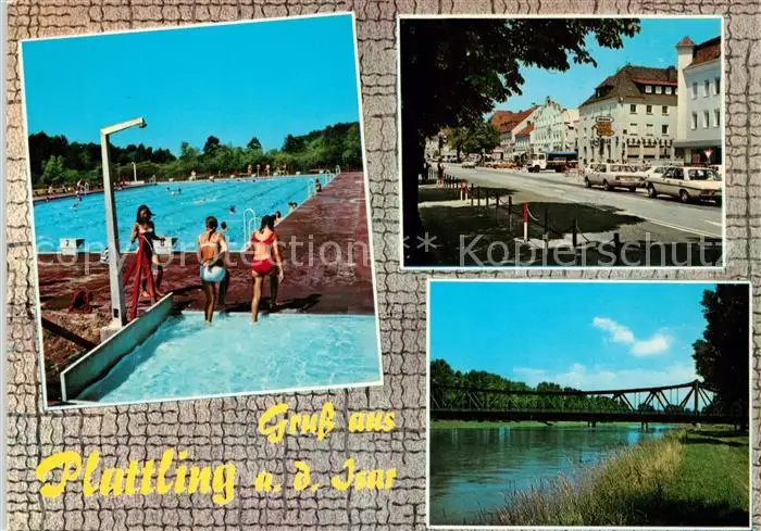 AK / Ansichtskarte Plattling_Isar_Bayern Freibad Bruecke Plattling_Isar_Bayern