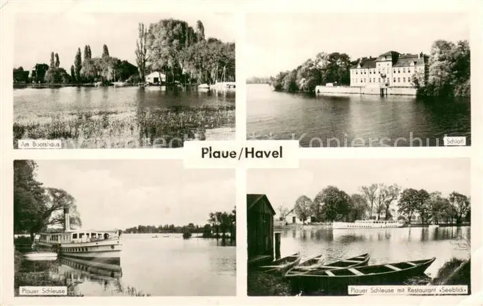 AK / Ansichtskarte Plaue_Havel Bootshaus Schloss Schleuse Restaurant Seeblick Plaue_Havel