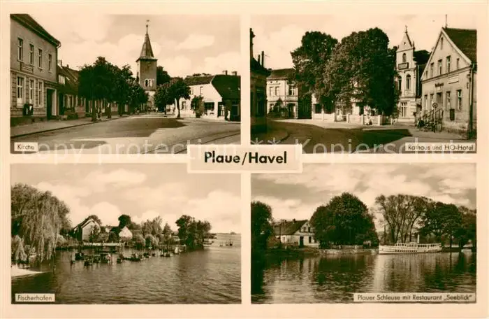 AK / Ansichtskarte Plaue_Havel Kirche Rathaus HO Hotel Fischerhafen Plauer Schleuse Restaurant Seeblick Plaue_Havel