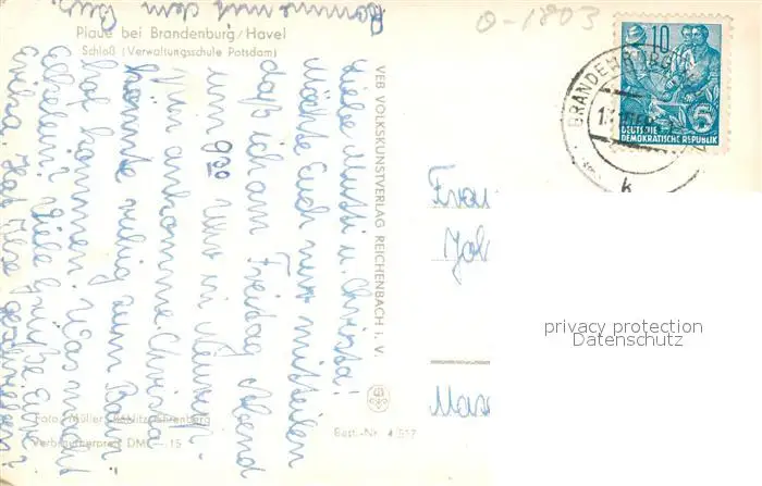 Plaue_Havel Schloss Verwaltungsschule Potsdam Plaue_Havel postalisch gelaufen 1958 Erhaltung siehe scans [FriedD77] Frierer
