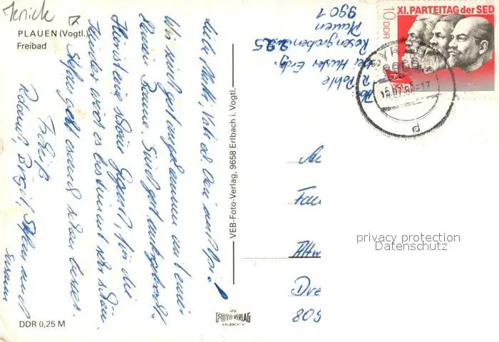 Plauen_Vogtland Freibad Plauen_Vogtland postalisch gelaufen nach 1965 Erhaltung siehe scans [WerneD78] WernPID7