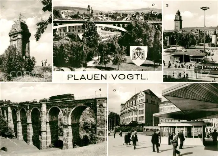 AK / Ansichtskarte Plauen_Vogtland Kemmlerturm Friedensbruecke Otto Grotewohl Platz Syratalbruecke Stadt der Spitzen Handwerk Plauen_Vogtland