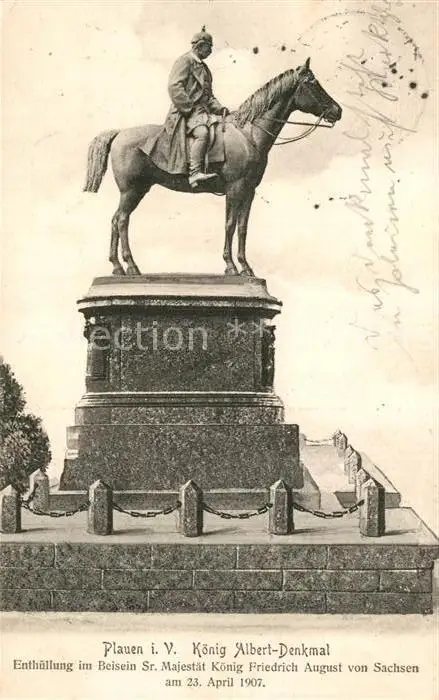 Plauen_Vogtland Koenig Albert Denkmal Plauen_Vogtland postalisch gelaufen 1907 Erhaltung siehe scans [KathaD81] Kathoren