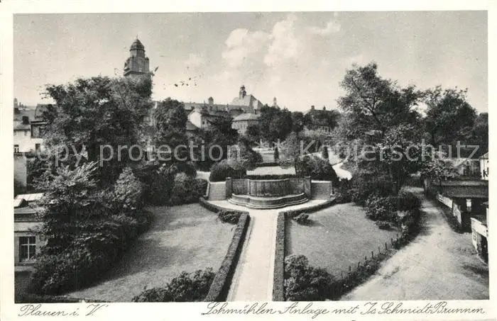 AK / Ansichtskarte Plauen_Vogtland Lohm?hlen Anlage mit Is Schmidt Brunnen Plauen_Vogtland
