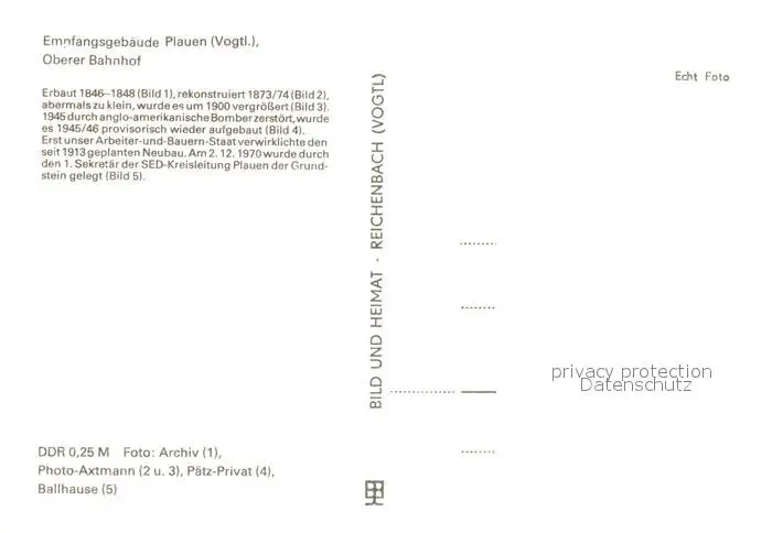 Plauen_Vogtland Oberer Bahnhof Stadt der Spitzen Plauen_Vogtland postalisch nicht gelaufen 1985 Erhaltung siehe scans [FriedD77] Frierer