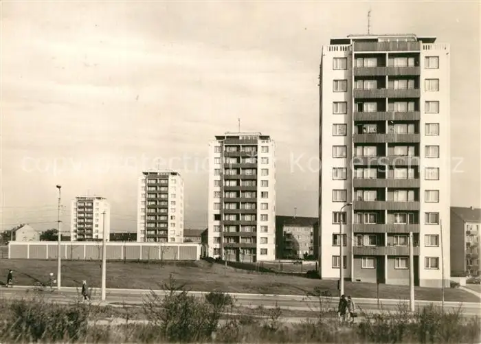 Plauen_Vogtland Punkthaeuser an der Bahnhofstrasse Hochhaeuser Plauen_Vogtland postalisch gelaufen 1971 Erhaltung siehe scans [FriedD77] Frierer
