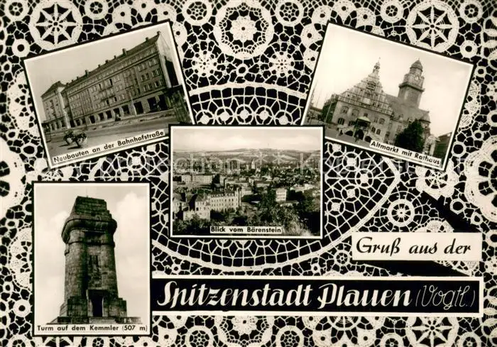 AK / Ansichtskarte Plauen__Vogtland Neubauten an der Bahnhofstrasse Altmarkt mit Rathaus Turm auf dem Kemmler Blick vom Baerenstein