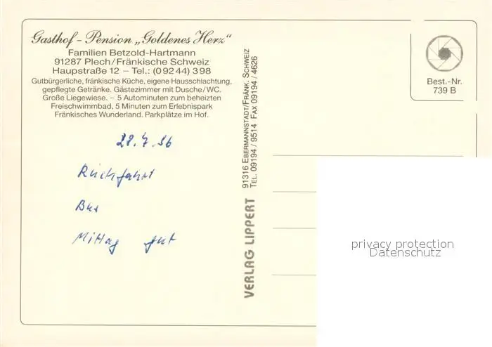Plech Gasthof Pension Goldenes Herz in der Fraenkischen Schweiz Plech postalisch nicht gelaufen 1996 Erhaltung siehe scans [FriedD77] Frierer