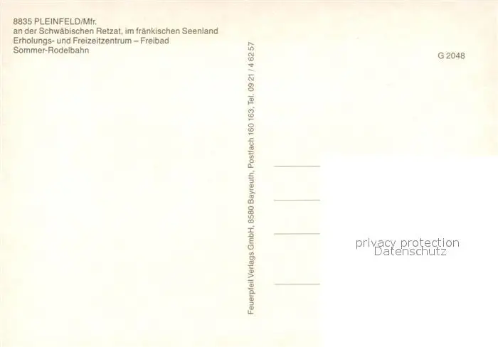 Pleinfeld Brunnen Seenland Stadttor Rathaus Sommer Rodelbahn Pleinfeld postalisch nicht gelaufen nach 1965 Erhaltung siehe scans [WerneD78] WernPID7