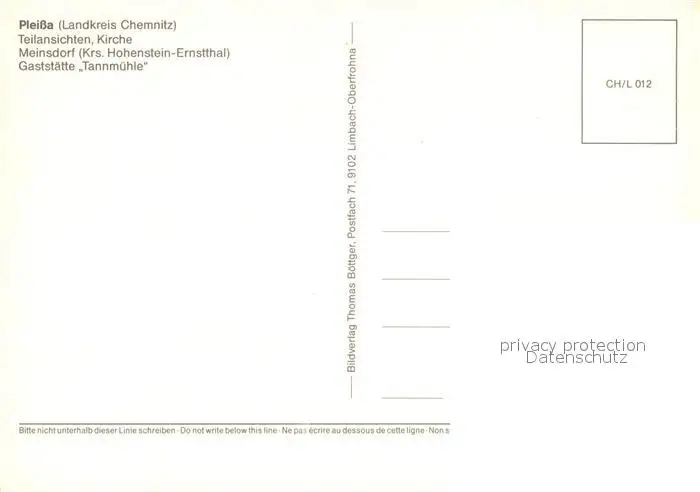 Pleissa Kirche Meinsdorf Gaststaette Tannmuehle Pleissa postalisch nicht gelaufen nach 1965 Erhaltung siehe scans [NatalD47] NataID47