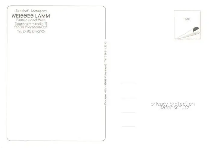 Pleystein Gasthof Metzgerei Weisses Lamm Bergkirche Panorama Oberpfaelzer Wald Pleystein postalisch nicht gelaufen 1996 Erhaltung siehe scans [FriedD77] Frierer