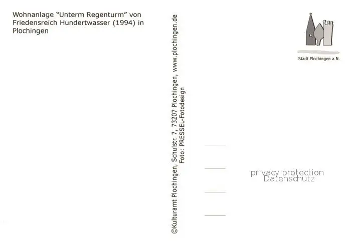 Plochingen Wohnanlage Unterm Regenturm von Hundertwasser Plochingen postalisch nicht gelaufen 1994 Erhaltung siehe scans [FriedD77] Frierer