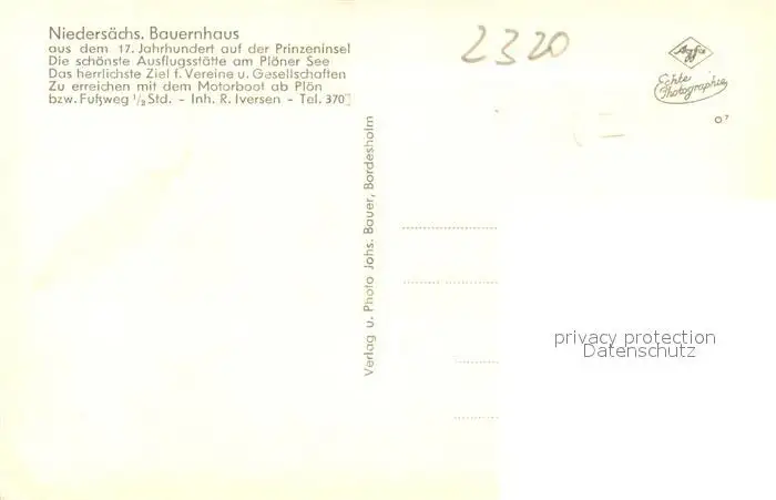 Ploen_See Niedersaechsisches Bauernhaus 17. Jhdt. Ausflugsgaststaette Prinzeninsel Ploener See Ploen_See postalisch nicht gelaufen 1921-1965 Erhaltung siehe scans [FriedD77] Frierer