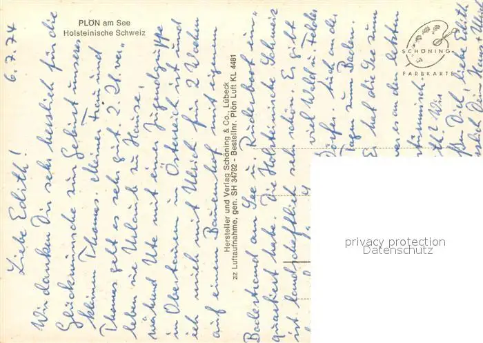 Ploen_See Schloss Naturpark Holsteinische Schweiz Ploen_See postalisch nicht gelaufen 1974 Fliegeraufnahme Erhaltung siehe scans [FriedD77] Fliegeraufnahme Frierer