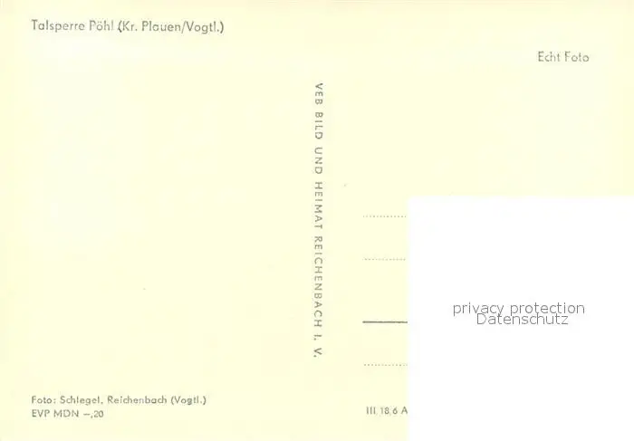 Poehl_Vogtland Talsperre Sperrmauer Stausee Poehl_Vogtland postalisch nicht gelaufen 1964 Erhaltung siehe scans [FriedD77] Frierer