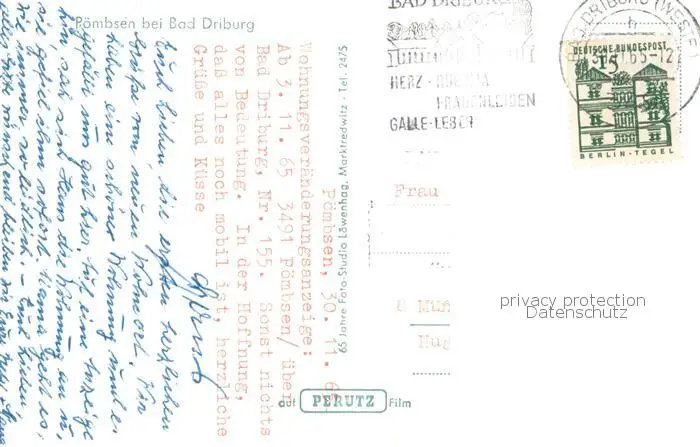 Poembsen Ortsansicht Poembsen postalisch gelaufen 1965 Erhaltung siehe scans [WerneD78] WernPID7