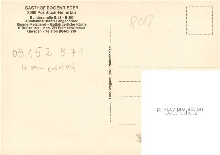 Poernbach Gasthof Bogenrieder Gaststube Zimmer Kapellchen Poernbach postalisch nicht gelaufen nach 1965 Erhaltung siehe scans [FriedD77] Frierer