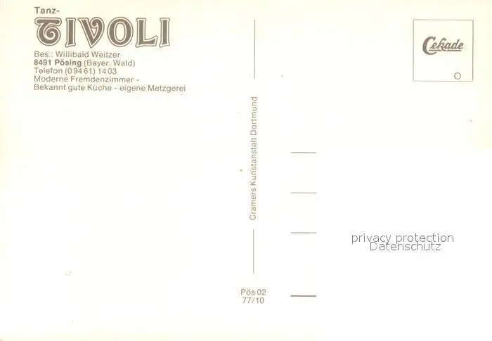 Poesing Hotel Restaurant Tanzbar Tivoli Kegelbahn Poesing postalisch nicht gelaufen 1977 Erhaltung siehe scans [FriedD77] Frierer