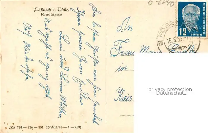 Poessneck Krautgasse Rathaus Poessneck postalisch gelaufen 1953 Erhaltung siehe scans [KathaD81] Kathoren