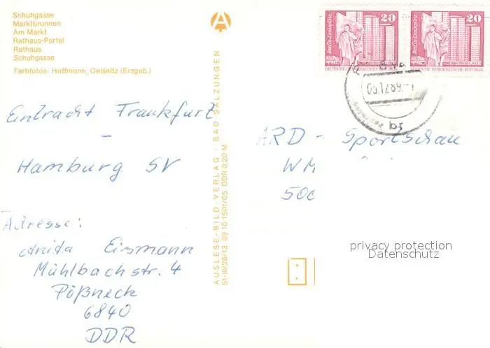 Poessneck Schuhgasse Marktbrunnen Am Markt Rathaus Portal Rathaus Schuhgasse Poessneck postalisch gelaufen 1989 Erhaltung siehe scans [WerneD78] WernPID7