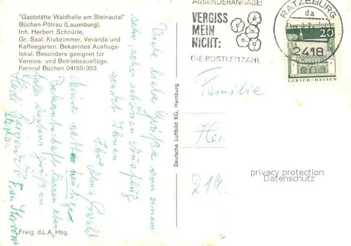 Poetrau Gaststaette Waldhalle am Steinautal Landschaftspanorama Poetrau postalisch gelaufen 1971 Erhaltung siehe scans [FriedD77] Frierer