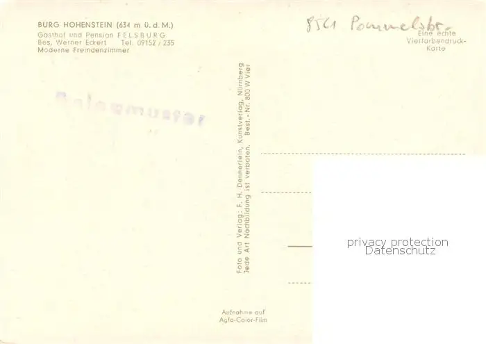 Pommelsbrunn Burg Hohenstein Gasthof Felsburg Pommelsbrunn postalisch nicht gelaufen nach 1965 Erhaltung siehe scans [WerneD78] WernPID7