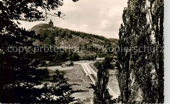 AK / Ansichtskarte Porta_Westfalica Blick vom Jakobsberg auf Wittekindberg un Kaiser Wilhelm Denkmal Porta_Westfalica