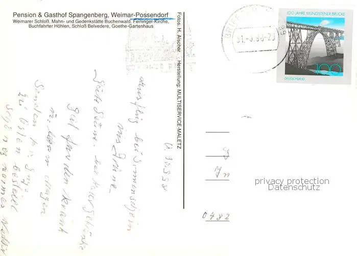 Possendorf_Weimar Weimarer Schloss Mahn und Gedenkstaette Feininger Kirche Buchfahrter Hoehlen Schloss Belvedere Goethe Gartenhaus Possendorf Weimar postalisch gelaufen 1998 Erhaltung siehe scans [WerneD78] WernPID7