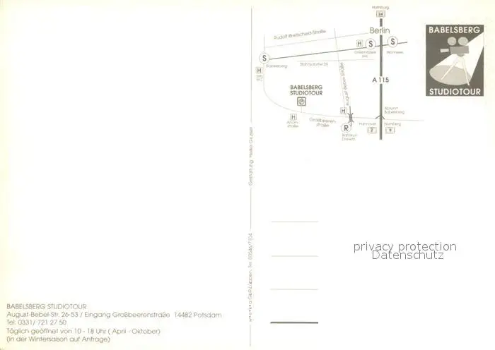 Potsdam Filmerlebnispark Bablesberg Studiotour Potsdam postalisch nicht gelaufen nach 1965 Erhaltung siehe scans [FriedD77] Frierer