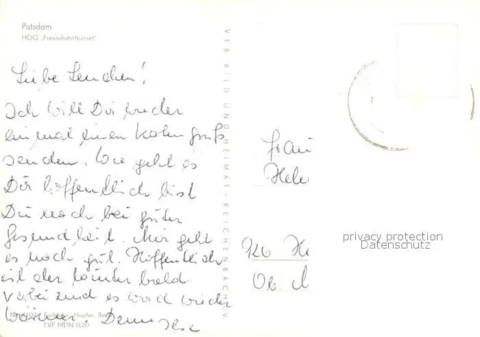 Potsdam HOG Freundschaftsinsel Potsdam postalisch gelaufen nach 1965 Erhaltung siehe scans [WerneD78] WernPID7