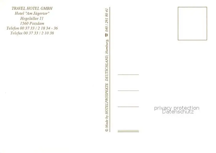 Potsdam Hotel Am Jaegertor Potsdam postalisch nicht gelaufen nach 1965 Erhaltung siehe scans [FriedD77] Frierer